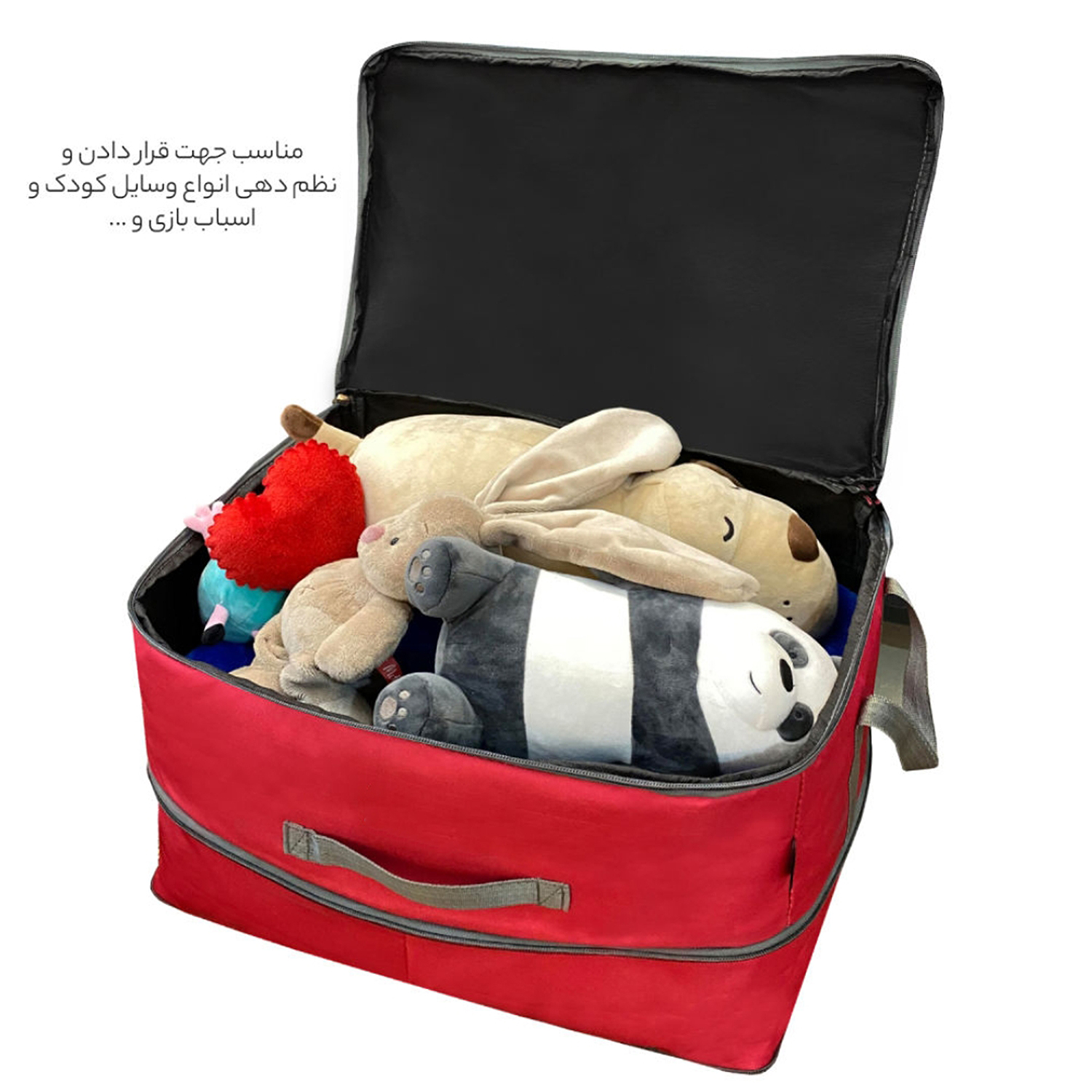 جنس پارچه از برزنت میباشد دارای یک دسته جهت حمل به صورت دستی دارای دو دسته در دو طرف جهت حمل آسان تر دارای جنس بدنه ضد آب و قابل شست و شو دارای قابلیت افزایش و کاهش حجم توسط زیپ حجم دهنده دارای ابر و آستر داخلی در تمامی قسمت های ساک مناسب جهت استفاده داخل کمد لباس , پیک نیک , سفر , داخل خودرو و نظم دهی بالش و پتو در سفر
