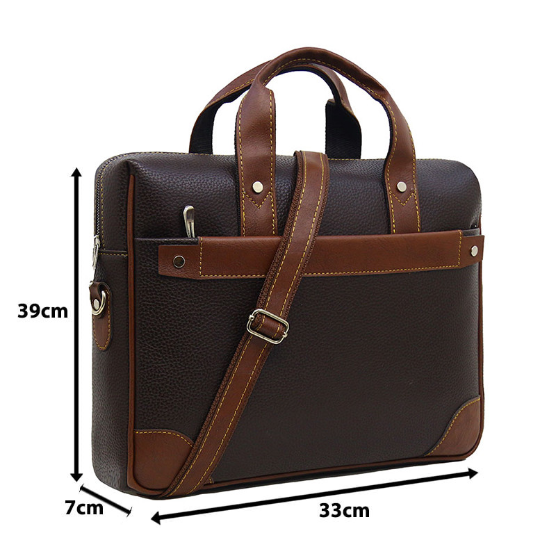 -کیف چرم مصنوعی اداری -مردانه و زنانه -دو دسته -تک زیپ -یراق آلات تمام فلزی -دارای محفظه لپ تاپ -بند رو دوشی قابل تنظیم -یک جیب زیپ دار در جلوی کیف -یک جیب با قفل مگنتی در پشت کیف